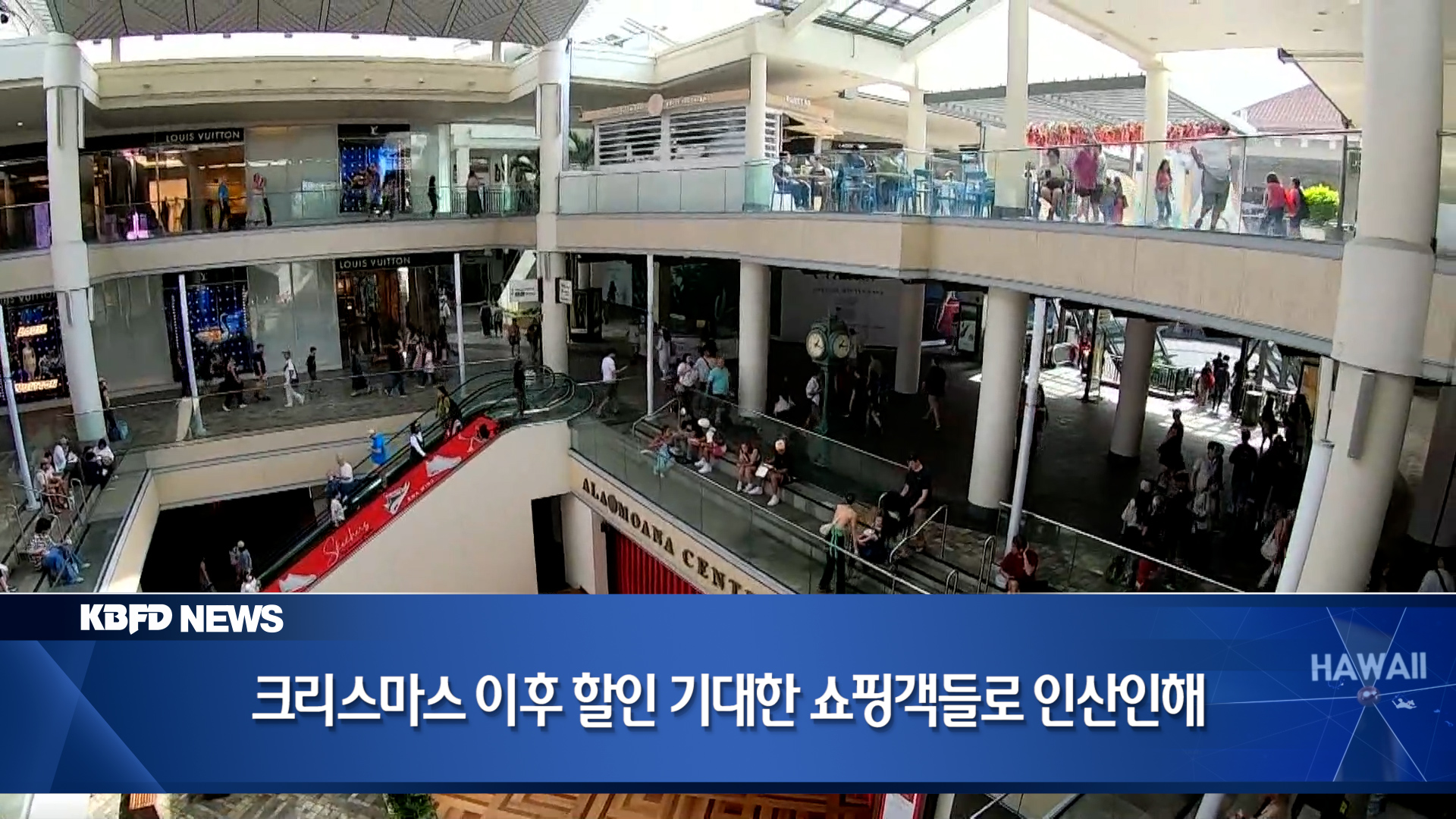 크리스마스 다음 날인 어제 하와이주 각 쇼핑몰에는 크리스마스 이후 세일을 기대하는 많은 쇼핑객들로 분주한 모습을 보였습니다. 또한 일부 쇼핑객들은 상품권 등을 사용하고 크리스마스 선물을 교환하기 위해 각 쇼핑몰을 찾았습니다.