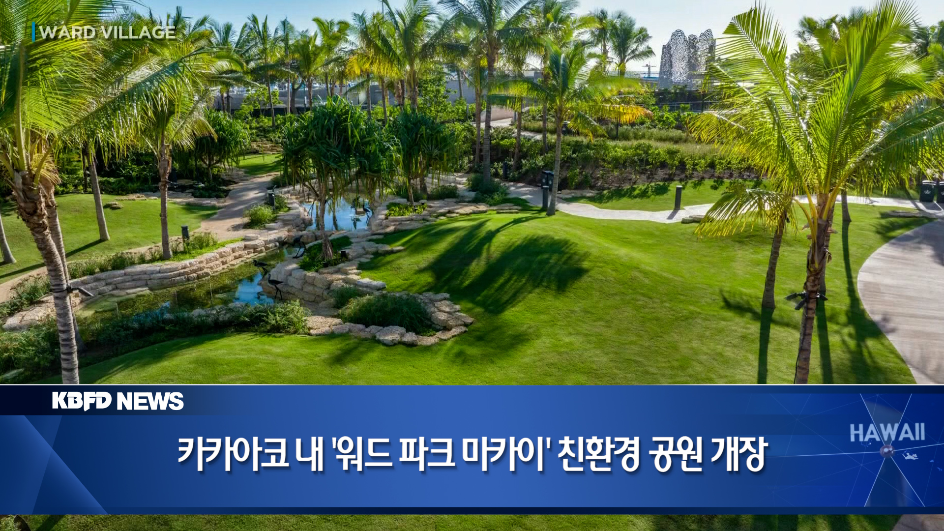 카카아코의 아우아히 스트릿 근처에 빅토리아 워드 파크 마카이는 워드 빌리지 내 만들어진 첫 번째 인증된 공원으로 친환경적인 모습으로 지역 주민들이 편안하게 방문할 수 있는 야외 공간이 될 것으로 예상된다고 개발업체들은 밝혔습니다. 이 공원은 1.4에이커 부지 위에 만들어졌는데, 하와이 고유 식물들이 심어져 있으며, 하와이 원주민 전통의 수로의 모습을 딴 관개시설이 만들어져 눈길을 끌고 있습니다. 이곳은 자연 친화적임과 동시에 하와이 문화를 느낄 수 있도록 만들어졌다고 관계자들은 전했습니다. 공원 안에는 하와이의 자연과 전통문화를 기념할 수 있는 두 개의 공공 미술 작품이 설치됐습니다. 이 중 하나의 작품은 예술가인 린다 플레밍이 바다의 해류와 천체 항법에서 영감을 받아 만든 조각상인 웨이파인딩(Wayfinding)이며 다른 작품은 댄 오스터 밀려가 만든 일곱 개의 청동 하와이안 조각인 아에오(Aeo Birds)새들입니다. 이번에 공원을 개장한 개발업체 측은, 이 공원이 앞으로 3.5 에이커 규모로 완성될 도시의 개방형 오아시스 공원을 위한 개발 계획의 첫 번째 단계라면서 앞으로 공원을 더 확장할 예정이라고 전했습니다. 빅토리아 워드 파크 마카이는 주민들을 위한 삶의 질 향상과 더욱 확장된 연결성, 중심지의 역할을 할 수 있도록 설계됐다고 개발업체 측은 밝히고, 이는 워드 빌리지 전체의 비전과도 일치한다고 말했습니다. 이 공원은 자신의 주택을 개방해 주민들을 위한 전통적 모임을 비롯해 하와이 고유 예술과 음악, 그리고 언어 등을 지속시킬 수 있도록 각종 행사를 주최한 하와이의 챔피언으로 알려진 빅토리아 워드의 이름을 따 지어졌다고 관계자들은 덧붙였습니다.