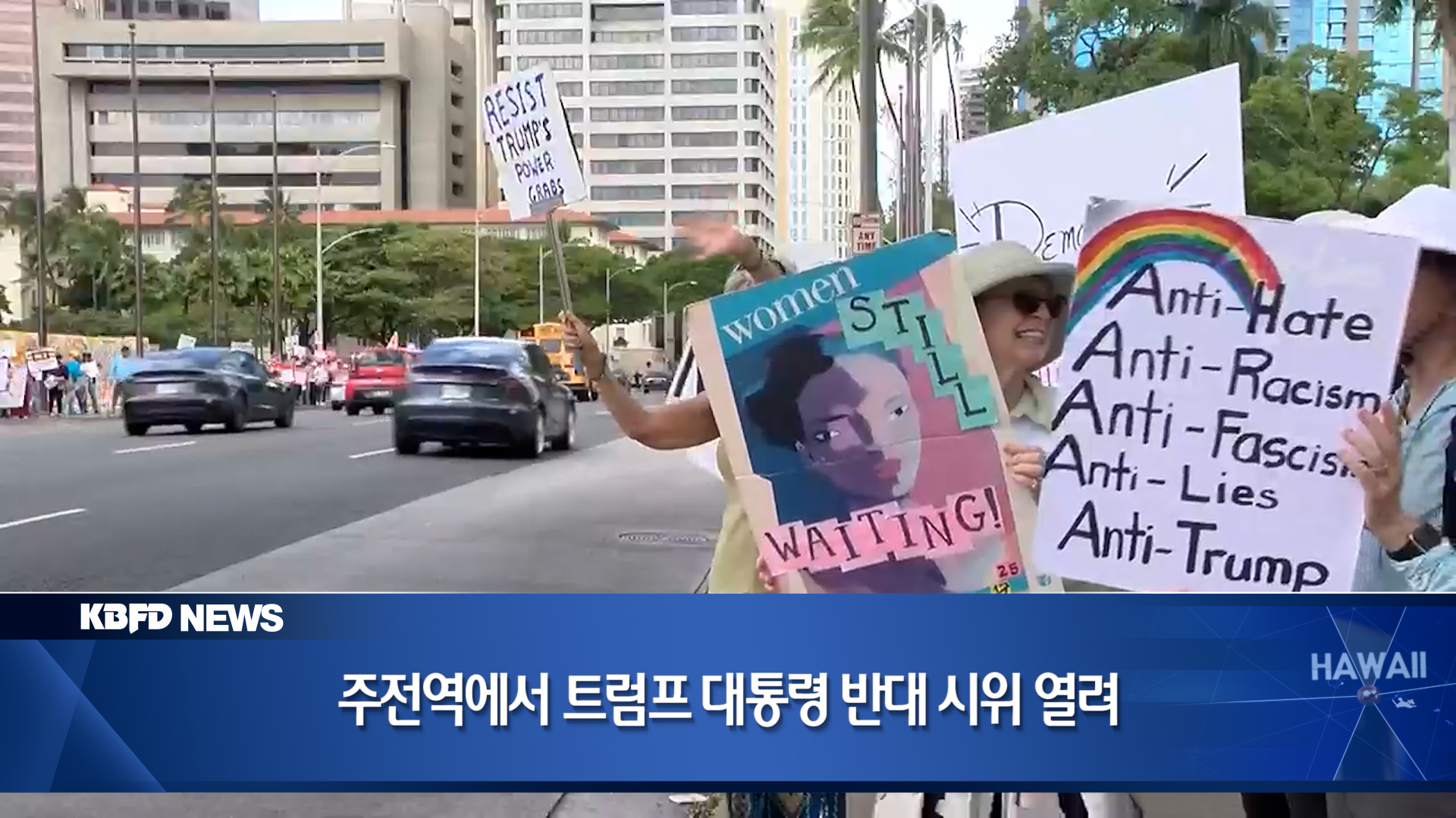트럼프 대통령이 어제 연방 의회에서 집권 2기 첫 상하원 의회 합동 연설을 한 가운데, 하와이를 비롯한 미 전역에서 트럼프 반대 시위가 열렸습니다. 하와이에서도 호놀룰루를 비롯해 마우이와 빅아일랜드 등 주전역에서 수백 명이 트럼프 반대 시위를 벌였습니다.