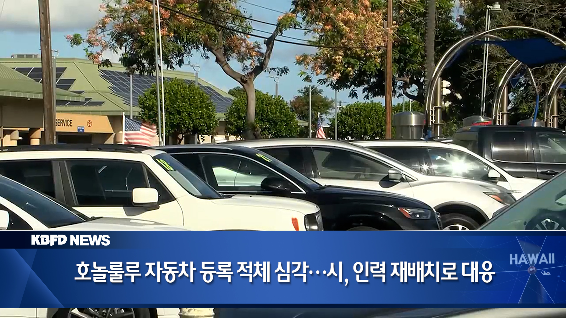 자동차 등록과 소유권 이전 신청이 급증하면서, 호놀룰루시 고객서비스부, CSD에는 수천 건의 신청서가 쌓였습니다. 시 당국은 직원들을 신청서 처리 업무에 재배 치하고, 초과 근무까지 시행하며 대응에 나서고 있습니다. 4월 이후 자동차 딜러들의 등록 신청이 급증했고, 5월 말 기준 약 8,000건의 차량 서류가 지연됐습니다. 최근에는 이 수치를 약 6,100건까지 줄였지만, 여전히 적체는 심각한 상태입니다. 등록을 기다리는 데 평균 17영업일이 걸리는 현재, 시는 이 기간을 이달 말까지 10일로 단축하는 것을 목표로 하고 있습니다. 이에 따라 위성 사무소 직원들이 주말에도 근무에 투입되고 있으며, 최대 18명이 추가로 참여한 날도 있었습니다. 딜러들은 등록 절차를 더욱 신속하게 처리하기 위해 하루 두 번 신청서를 제출할 수 있도록 하는 ‘딜러 대시(DASH)’ 프로그램의 확대를 요구하고 있지만, 시 당국은 현재로선 평가 단계에 있다고 밝혔습니다. 한편, 시는 장기적인 해결책으로 ‘DOORS’라는 온라인 등록 시스템도 시범 운영 중이며, 연말까지 등록 대기 시간을 절반으로 줄이는 것이 목표입니다. 이 같은 적체 상황에도 불구하고, 등록 갱신 등 다른 차량 관련 서비스는 중단되지 않은 상태입니다.