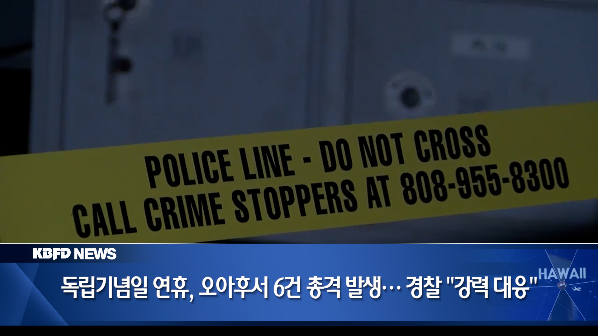 그런가하면 독립기념일 연휴 기간 동안 오아후 전역에서 6건의 총격 사건이 발생해 지역사회에 큰 충격을 주고 있습니다. 경찰은 강력한 대응과 예방을 약속하며 주민들의 협조를 당부했습니다.