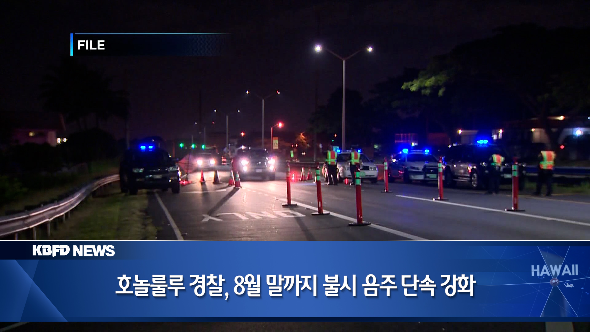 HAWAII NEWS 경찰, 불시 음주 단속 강화 By KBFD - 07/11/2025 0 호놀룰루 경찰국이 오는 8월 말까지 불시 음주 운전 단속을 강화합니다. 경찰은 지난해 9월부터 매주 음주 운전 검문소를 운영해왔으며, 오는 9월까지 계속될 예정입니다. 이번 조치는 교통사고 사망자와 부상자 감소를 목표로 하는 연방 프로그램 ‘52/12’(Fifty-two Twelve)에 따라 실시됩니다. 올해 들어 오아후 지역에서는 이미 41명이 교통사고로 숨졌으며, 이는 지난해 같은 기간의 16명에 비해 크게 증가한 수치입니다.