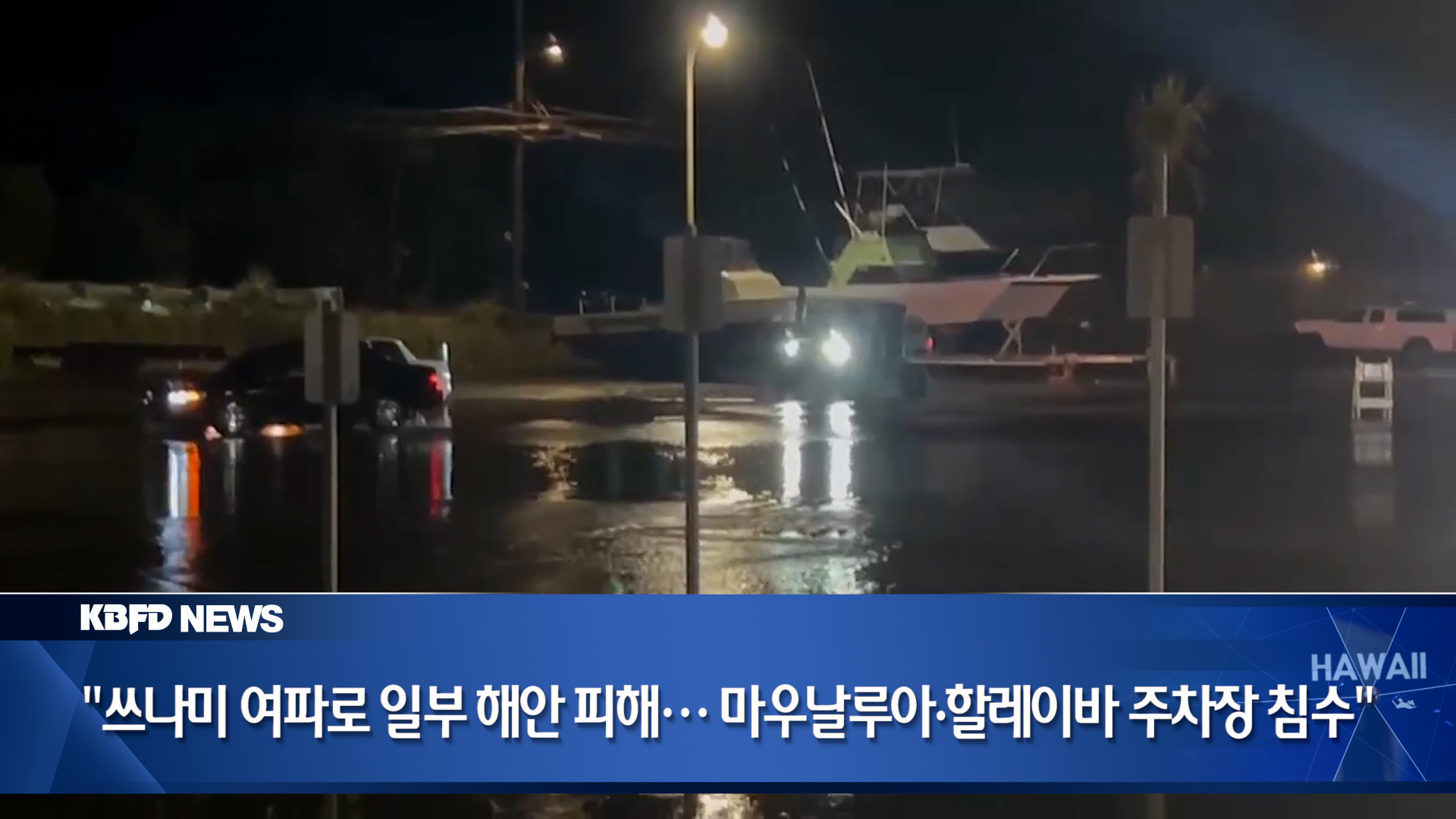 그런가하면 첫 쓰나미 파도가 하와이에 도달한 이후, 오아후 노스쇼어의 할레이바 보트 항구에서는 몇 시간 동안 물이 들락날락하는 현상이 지속됐습니다. 그러다 밤 9시 10분쯤, 갑자기 물이 항구 안으로 몰려들며 주차장 대부분이 침수됐습니다.