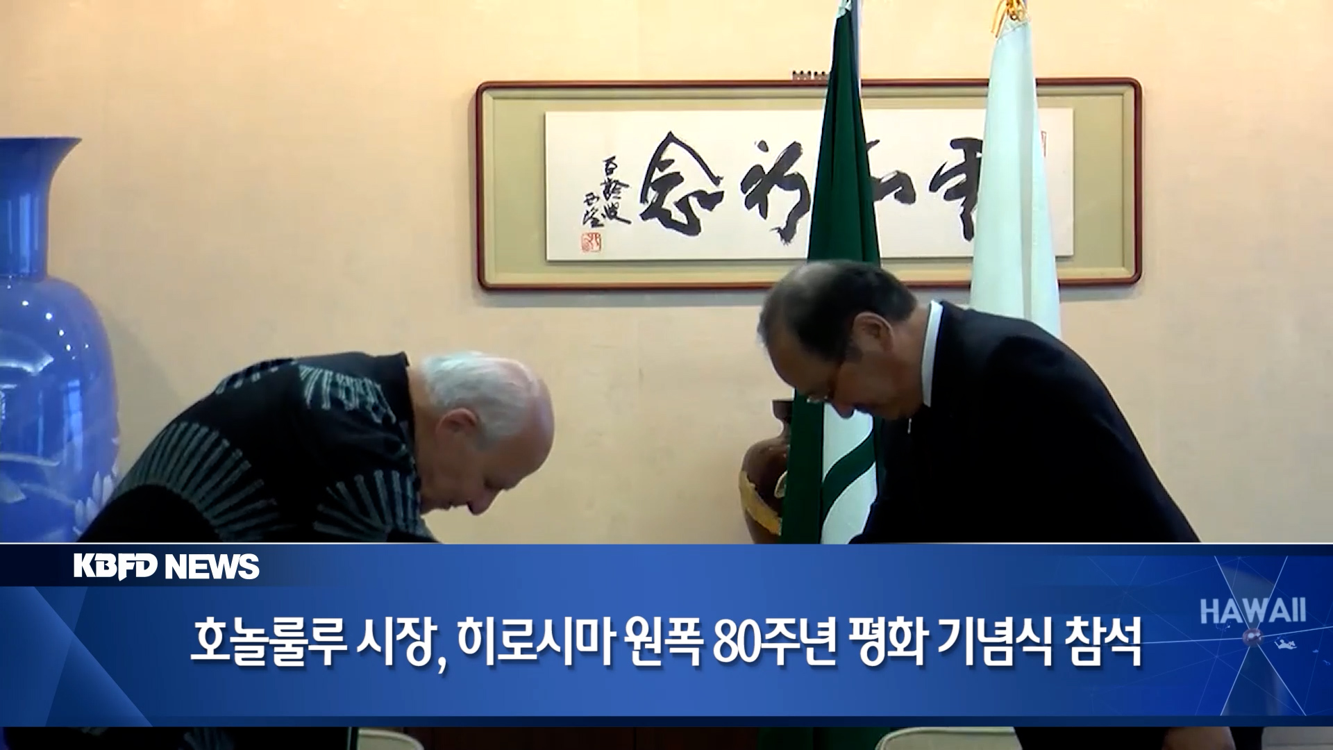 히로시마 시장 마츠리 카즈미는 평화와 이해 증진에 기여한 인사에게 수여하는 명예 시민상을 블랑지아디 시장에게 전달했습니다. 히로시마와 호놀룰루는 전쟁 종전 14년 후인 66년 전부터 자매 도시로 지정되어 깊은 우호 관계를 이어오고 있습니다. 블랑지아디 시장은 원폭 피해와 그 후유증을 기록한 히로시마 평화기념관을 직접 방문하며 “이 박물관을 걷는 경험은 제 인생에서 가장 강렬하고 감동적인 순간 중 하나였다”며 “이곳에서 일어난 참상과 희생에 가슴이 아프다. 그 기억은 오늘날까지도 살아있다”고 밝혔습니다. 히로시마 평화 기념식은 이번 주 수요일에 열릴 예정입니다.