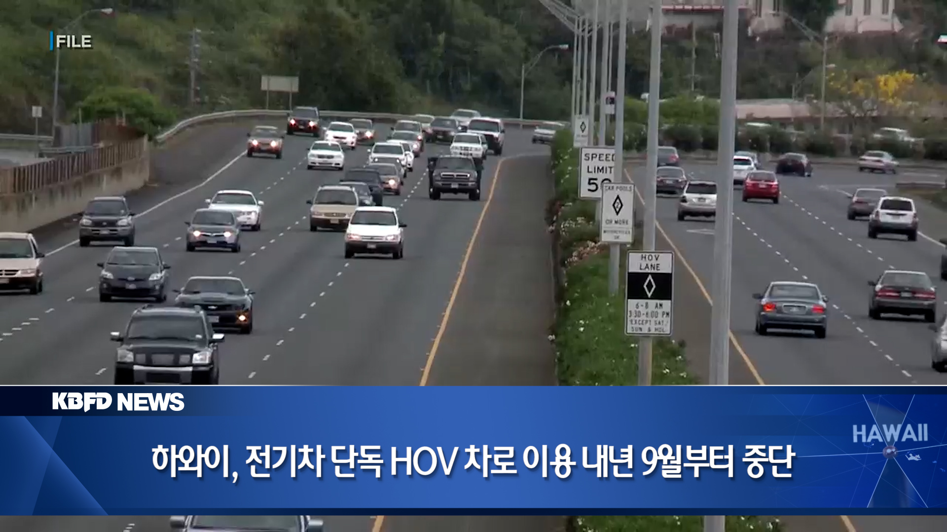 하와이에서 전기차 번호판을 단 차량이 혼자서 고속도로 다인승차 전용 차선을 이용할 수 있는 혜택이 곧 사라질 예정입니다.