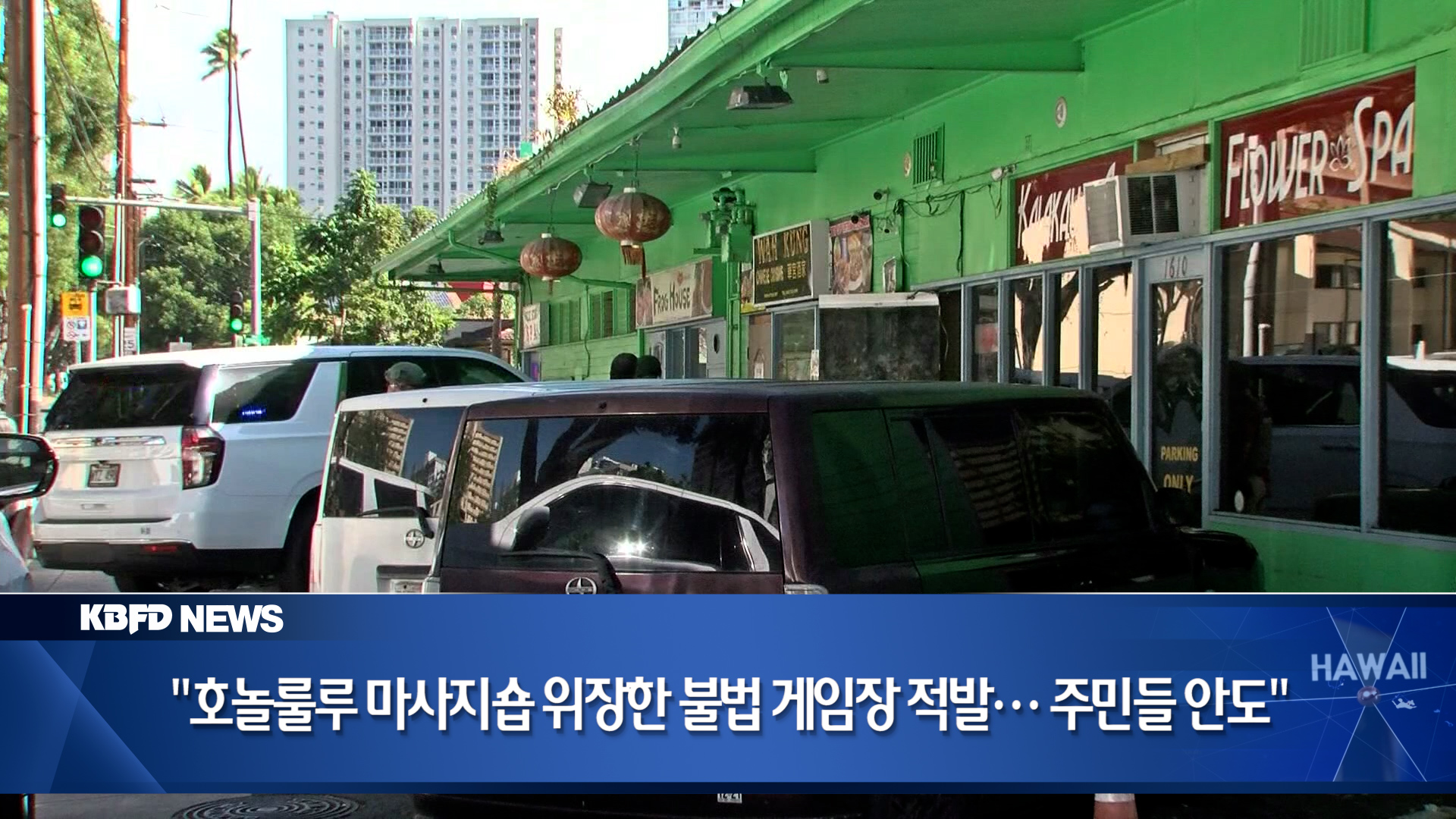 호놀룰루 파와 지역의 한 마사지 업소에서 불법 도박장이 운영돼 오다 법 집행국 소속 셰리프들에 의해 폐쇄됐습니다. 수개월 동안 지역 사회의 불안 요인이었던 불법 영업이 이번에 적발되면서 주민들은 안도감을 나타냈습니다.