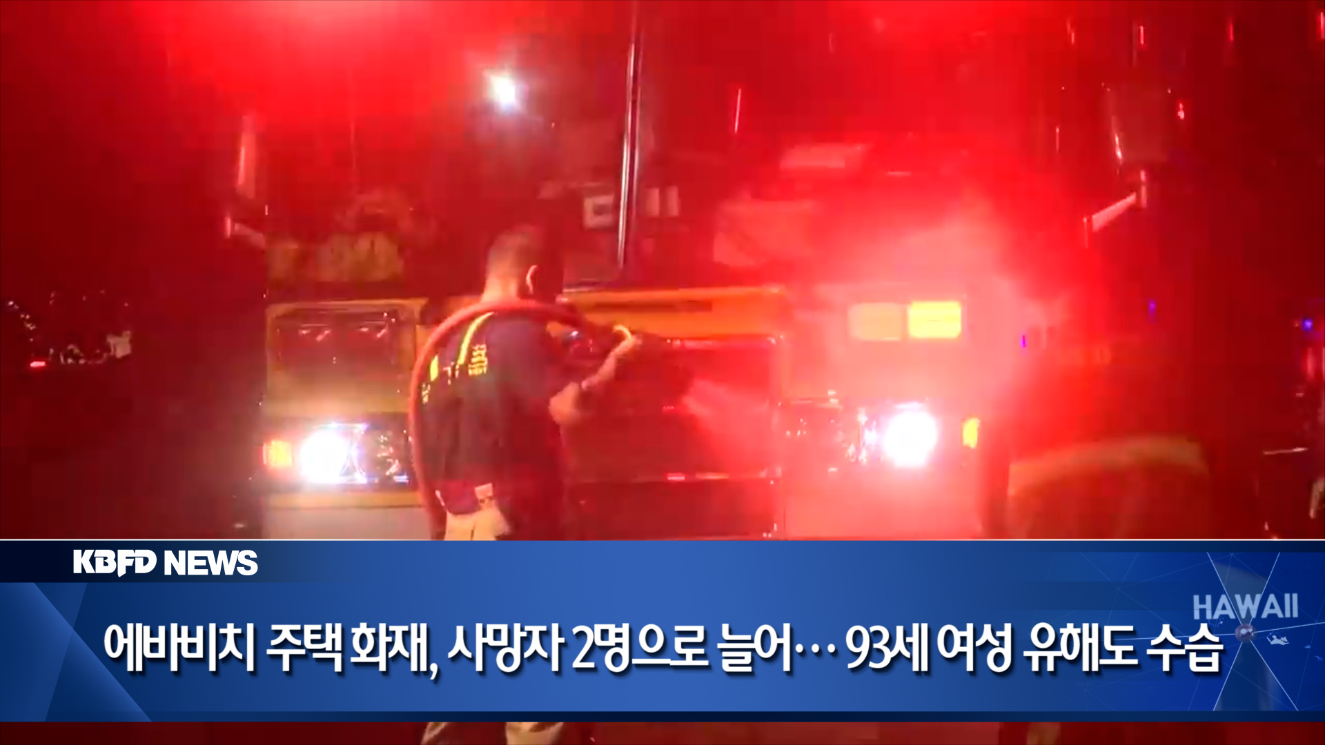 호놀룰루 소방국에 따르면 화재는 수요일 저녁 6시 35분쯤, 포트 위버 로드 91-471번지 주택에서 발생했습니다. 불이 났을 당시 주택 앞부분에서 강한 불길과 연기가 솟았으며, 뒷마당에 있던 별채 건물에도 불이 옮겨 붙은 것으로 전해졌습니다. 화재 현장에서는 93세로 추정되는 여성의 유해가 발견됐으며, 정확한 신원은 검시소에서 확인될 예정입니다. 또한 32세 여성과 50대 여성이 병원으로 이송됐으나, 이 가운데 32세 여성은 다음 날 오후 9시 15분경 숨졌다고 경찰이 밝혔습니다. 주택은 전소된 것으로 파악됐으며, 당국은 화재 원인을 조사중입니다.