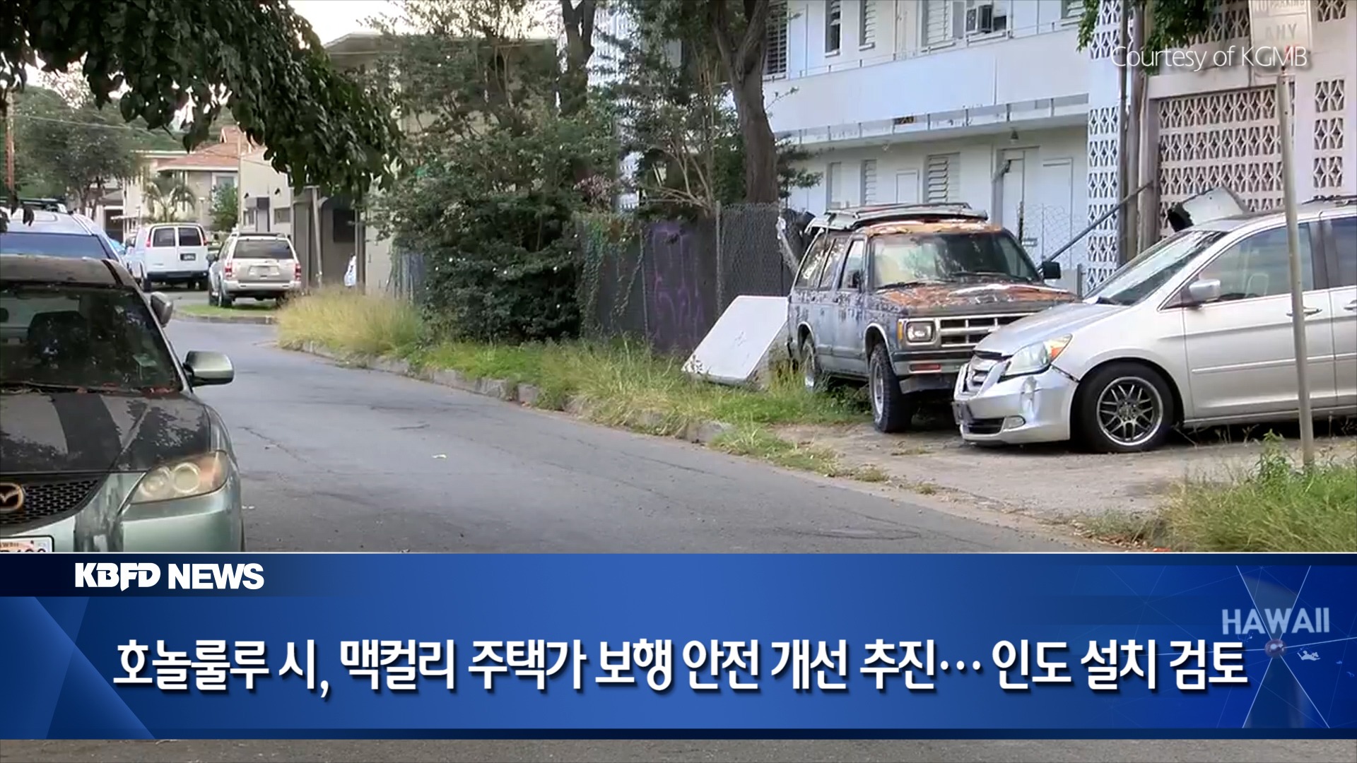 호놀룰루 시의 컴플리트 스트리트(Complete Streets) 프로그램이 보행 환경이 열악한 맥컬리 지역 주택가의 안전 개선에 나섰습니다. 문제가 제기된 지역은 맥컬리 스트리트 서쪽, 카피올라니 블러바드와 사우스 킹 스트리트 사이의 주거 밀집 지역입니다. 이 일대는 도로 폭이 좁고 차량 통행량이 많은 데다, 보도가 아예 없거나 끊긴 구간이 많아 주민 불편과 안전 우려가 이어져 왔습니다. 해당 지역에 거주하는 스콧 니시모토 호놀룰루 시의원은 특히 학생들의 통학 안전을 문제로 지적했습니다. 호놀룰루 시는 이 지역이 오아후 전역 약 800마일에 달하는 ‘미비 보행로’ 구간 중 하나로, 컴플리트 스트리트 조례에 따라 개선 대상에 포함됐다고 밝혔습니다. 어제 저녁 열린 주민 설명회에는 많은 주민이 참석해 스마트폰 실시간 설문으로 의견을 전달했는데, 가장 많이 나온 단어는 ‘unsafe’, 즉 ‘위험하다’였습니다. 교통 엔지니어 마이크 패커드는 맥컬리와 데이트 스트리트 일대의 주요 문제로 보도 미설치와 접근성 부족을 꼽았습니다. 시 당국이 지금 사업을 추진하려는 이유는 연방정부가 전체 사업비의 80%를 지원하기 때문입니다. 한편, 2017년 맥컬리 스트리트에 자전거 전용 차로가 설치되며 노상 주차 공간이 사라진 뒤, 주변 이면도로 주차 문제가 심화됐다는 주민 불만도 제기됐습니다. 이에 대해 시는 이번 사업이 합법적인 주차 공간을 없애는 것이 아니라, 현재 잔디나 흙으로 남아 있지만 사실상 보도 위에 불법 주차되고 있는 공간에 콘크리트 보도를 설치하는 것이라고 강조했습니다.