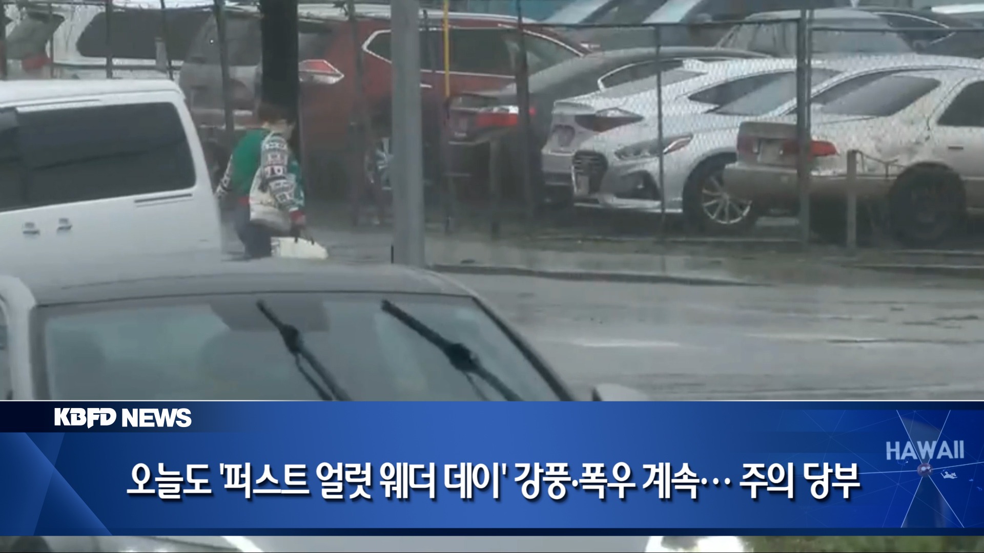 강풍과 폭우가 이어지면서 오늘 월요일도 하와이 전역에 ‘퍼스트 얼럿 웨더 데이’가 발령됐습니다. 당국은 기상 상황이 불안정하다며 주민들에게 외출과 야외 활동을 자제해 달라고 당부하고 있습니다.