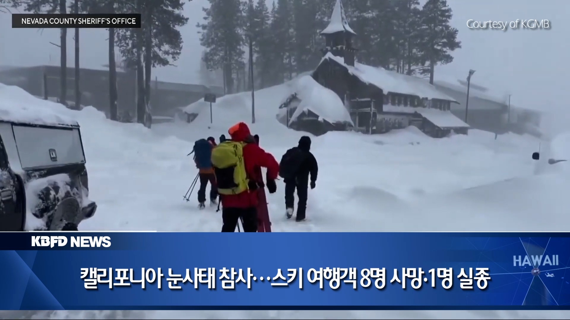 AP통신과 AFP통신 보도에 따르면 오늘 캘리포니아주 네바다카운티 보안관실은 북부 타호호수 인근 캐슬피크 지역에서 눈사태에 휩쓸린 스키 여행 참가자 8명이 숨진 채 발견됐다고 밝혔습니다. 1명은 여전히 실종 상태로, 40여 명의 구조대가 눈보라 속에서 수색을 이어가고 있습니다. 그러나 보안관실은 가족들에게 구조 작업을 시신 수습 작업으로 전환했다고 통보해, 실종자 역시 사망했을 가능성이 큰 것으로 전해졌습니다. 사고는 겨울 폭풍이 캘리포니아를 강타하며 눈사태 경보가 내려진 상황에서 발생했습니다. 일행은 오지 스키, 이른바 백컨트리 스키 여행 도중 변을 당한 것으로 파악됐습니다. 스키 가이드 4명과 고객 11명 등 총 15명으로 구성된 일행 가운데 6명은 전날 구조됐으며, 이 중 2명은 곧바로 병원으로 이송됐습니다. 당국은 당초 참가자를 16명으로 발표했으나, 1명은 실제 여행에 참여하지 않은 것으로 확인돼 인원을 정정했습니다. 여행을 주관한 업체 블랙버드 마운틴 가이드는 이들이 기지로 복귀하던 중 사고를 당했다고 설명했습니다. 보안관실은 악천후 예보에도 불구하고 여행을 강행한 결정이 적절했는지 여부에 대해서도 조사할 방침입니다. 한편 캘리포니아주는 지난 15일부터 시작된 겨울 폭풍의 영향으로 지역에 따라 폭우와 폭설이 이어지고 있습니다. 사고 지역을 관할하는 시에라 눈사태 센터는 현재도 눈사태 위험이 높다며 해당 지역 접근을 자제할 것을 권고했습니다.