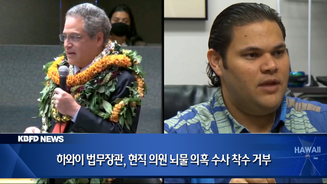 하와이주 법무장관이 현직 주의원이 현금 3만5천 달러가 든 봉투를 받은 의혹과 관련해 현재로서는 주 차원의 뇌물 수사에 착수하지 않겠다고 밝혔습니다. 앤 로페즈 하와이주 법무장관은 어제 이미 진행 중인 연방 검찰의 수사와 병행할 경우, 연방 수사를 방해할 수 있다는 이유를 들며 주 정부 차원의 조사를 보류한다고 설명했습니다.