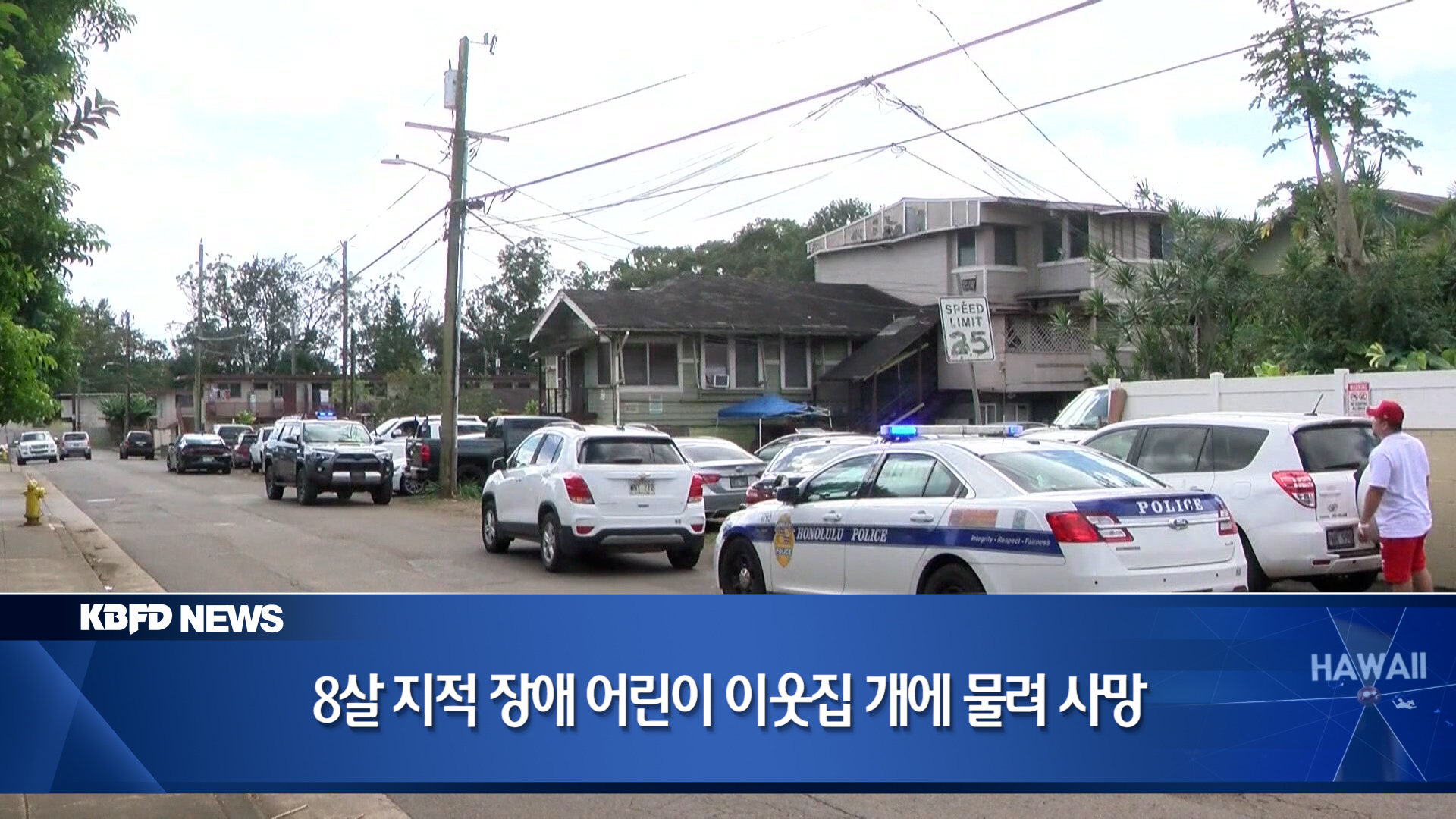 호놀룰루 경찰은 지난주 화요일 오전 11시쯤, 와히아와 지역의 오하이 스트릿에 위치한 한 주택에서 지적 장애를 가진 8살난 어린이가 개에 물려 사망했다고 밝혔습니다. 경찰은 다행히 이 주택에 설치된 감시카메라에 찍힌 장면으로 사건의 정황을 파악하게 됐다고 전했습니다. 영상에서 사망한 어린이는 이웃집 마당에 혼자 들어가 있었고 그곳에는 목줄에 묶인 큰 개가 있었습니다. 어린이는 이 개에 물렸으며 구조대가 도착했을 때, 어린이의 머리와 목에는 심각한 부상을 입은 채 맥박이 멈춰있던 것으로 알려졌습니다. 구조대원들은 이 어린이에게 심폐 소생술을 벌인 뒤 병원으로 옮겼지만 사망했습니다. 하와이 대학교 장애학 교수인 메리아 니콜스는 발달 장애나 지적 장애가 있는 어린이들이 자주 도망을 가고 특히 지적 장애아들의 경우 매우 영리한 방법으로 집을 빠져나가기 때문에 보호자들의 각별한 주의가 필요하다고 강조했습니다. 경찰은 이 어린이가 사건이 발생 주택 근처에 거주하는 것으로 확인됐다고 밝혔으나 사건 발생 당시 이 어린이의 부모가 어디에 있었는지의 여부는 밝히지 않았습니다. 경찰은 이번 사건을 방치된 사망사고anattended death로 수사를 시작했다고 전했습니다. 한편 하와이 휴메인 소사이어티는 개의 주인이 개를 휴메인 소사이어티에 넘겨줬다면서, 이 개가 지역 사회의 안전을 위협할 수 있는 심각한 공격적인 행동을 보였기 때문에 인도적인 안락사 조치를 실시했다고 밝혔습니다. 이번 사건과 관련해 최근들어 오아후에서 개에게 공격을 받는 사건이 증가하고 있는 것으로 나타났습니다. 호놀룰루 응급 구조 서비스국은 지난 2023년 9월부터 2024년 9월까지 오아후에서 3백건의 개 공격 사건 신고를 받고 출동했는데, 이는 전년도와 비교해 약 20% 증가한 수치라며 우려했습니다.