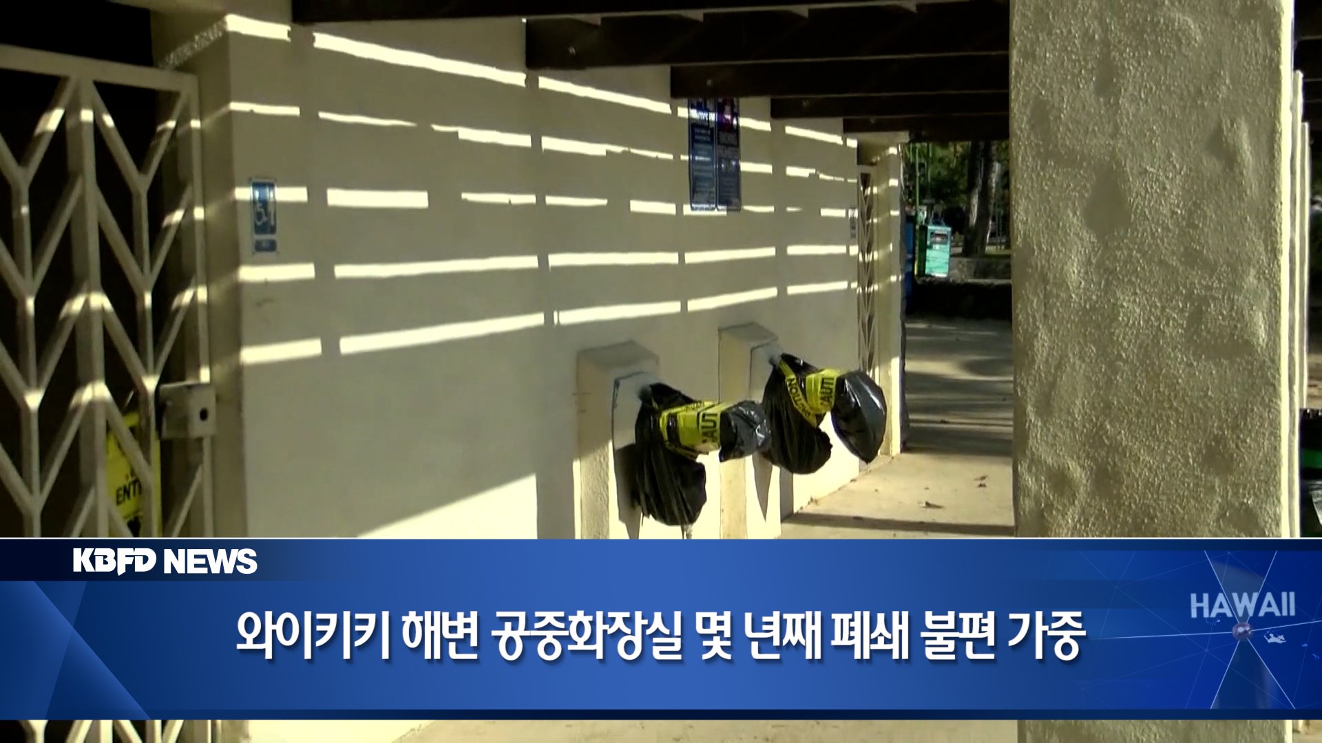 프린스 쿠히오 동상 인근 화장실은 지난 몇 년 동안 폐쇄되온 것으로 알려졌습니다. 이 때문에 해변 방문객들과 해양 구조대원들이 큰 불편을 겪고 있는 것으로 전해졌습니다. 실제로 이곳을 찾는 방문객들은 플라스틱 장갑이나 봉지를 가지고 이곳을 찾아 용변을 해결하고 있으며, 일부 장애인들은 인도에서 대변을 보고 있다고 말했습니다. 해양 구조대원들은 이같은 신고를 받고 출동한 적이 있다고 전했습니다. 방문객들은 해마다 가족들과 와이키키 해변을 찾고 있는데 올 때마다 화장실을 사용할 수 없어 불편함이 가중되고 있다고 말했습니다. 일부 방문객들은 사람들이 바다에서 소변을 놓는 일이 빈번하다고 전했습니다. 호놀룰루 공원 관계자들은 이곳 화장실이 지난 2023년 가을부터 기계적인 문제를 비롯해 전기 문제, 그리고 기물 파손 문제 등으로 폐쇄됐다고 설명했습니다. 관계자들은 이 화장실이 지난 1월 재개방됐지만, 지난주에 펌프가 고장이 나면서 다시 폐쇄됐다고 말했습니다. 시는 지난 몇 년 동안 폐쇄된 화장실 공사를 위해 4만 달러를 사용했다면서 문제가 많은 시설이라고 전했습니다. 시 관계자들은 이곳 외에도 와이키키 해변에 두 개의 공공 화장실이 있으며 이들 두 개 화장실은 폐쇄된 화장실과 약 5분 거리에 있다고 밝혔습니다. 시 측은 화장실 한 개는 호놀룰루 경찰 분국 옆에 있고 다른 하나는 동물원 근처에 있다면서 방문객들이 이들 화장실을 사용해달라고 전했습니다. 시 측은 폐쇄된 화장실을 계속해서 수리할 예정이라고 밝히고 하지만 언제 다시 재개장할지는 밝히지 않았습니다.