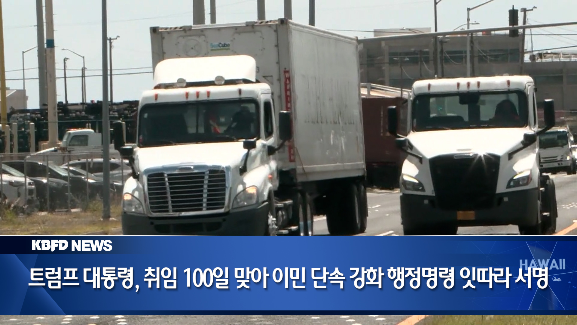 트럼프 대통령이 취임 100일을 맞아, 불법 이민 단속을 더욱 강화하는 행정명령에 연이어 서명했습니다. 이민자 보호 도시에 대한 제재는 물론, 영어 능력을 갖춘 트럭 운전사만을 허용하는 지침까지 포함되면서 논란이 일고 있습니다.