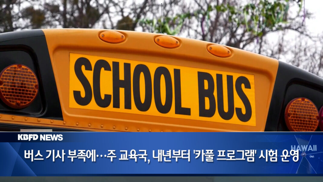 하와이주 교육국이 스쿨버스 운행에 어려움을 겪으며, 내년 학년도부터 새로운 통학 대책으로 ‘카풀 프로그램’을 시험 도입합니다. 학부모들의 협력을 통해 학생들의 안전한 등하굣길을 확보하겠다는 계획인데요, 자세한 소식 전해드립니다.