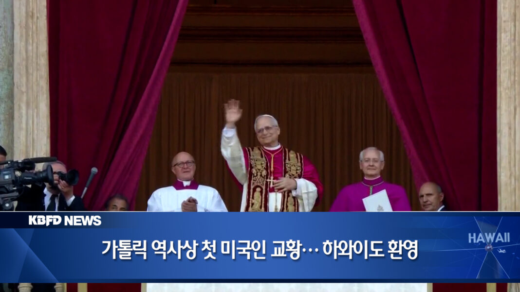 하와이 시간으로 어제 오전 6시 9분, 시카고 출신의 로버트 프레보스트(Robert Prevost) 추기경이 제267대 교황으로 선출됐습니다. ‘레오 14세’라는 이름으로 즉위한 그는 가톨릭 역사상 최초의 미국인 교황입니다. 레오 14세는 선출 직후 바티칸 성 베드로 대성당 중앙 발코니에 모습을 드러내 “모두에게 평화가 있기를 바란다”며 라틴어로 첫 메시지를 전했습니다.