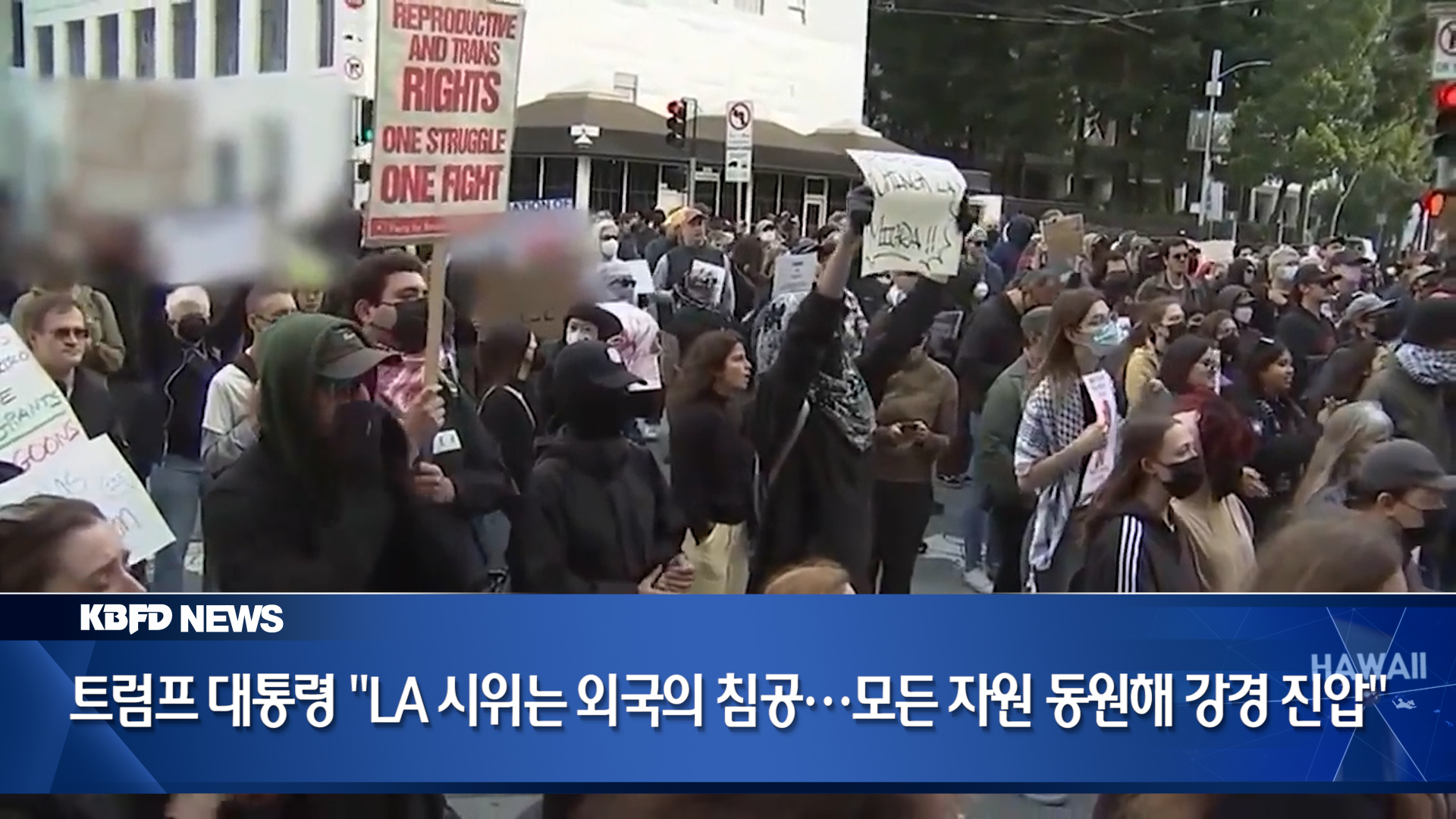 트럼프 대통령이 로스앤젤레스에서 확산되고 있는 불법 이민 단속 반대 시위를 ‘외국의 침공’으로 규정하며, 법과 질서를 회복하기 위해 강경 대응을 이어가겠다고 밝혔습니다. 트럼프 대통령은 주정부의 미온적인 대응을 강하게 비판하며, 연방 차원의 직접 개입도 불사하겠다는 입장을 내비쳤습니다.
