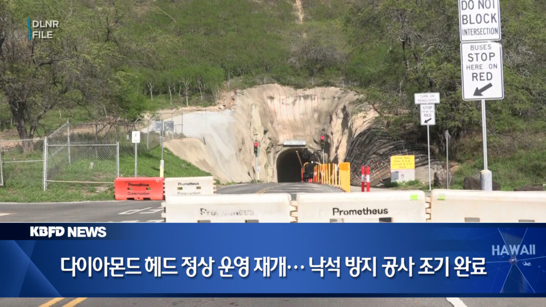 다이아몬드 헤드 주립 공원이 오늘부터 정상 운영을 재개했습니다. 태평양 역사공원(Pacific Historic Parks, 이하 PHP)과 하와이 주립공원국은 5백60만 달러 규모의 낙석 방지 공사가 최근 조기 완료됐다고 밝혔습니다. 이번 공사는 카할라 터널(Kahala Tunnel) 인근의 암석 낙하 위험 구간을 안정화하는 작업으로, 지난 1월 시작되어 2월부터 부분 폐쇄가 이어졌으며, 당초 7월 말 완공이 목표였습니다. 이에 따라 다이아몬드 헤드는 크리스마스와 새해 첫날을 제외하고, 매일 오전 6시부터 오후 6시까지 개방됩니다. 자세한 방문 정보는 Diamond Head 방문 안내 웹사이트 또는 전화 888-485-1941로 문의하면 됩니다.