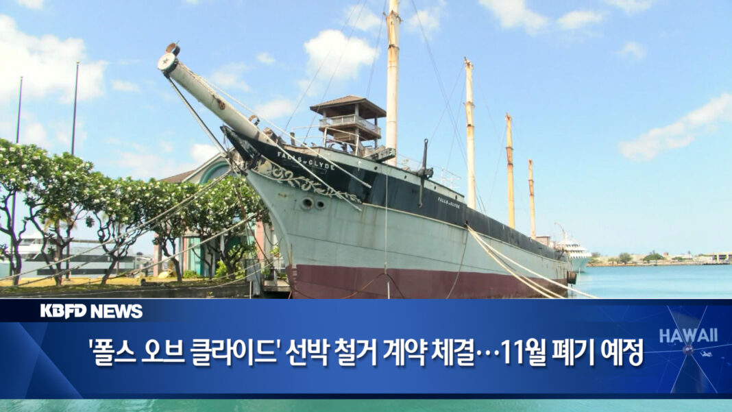 주 교통국이 146년 된 선박 ‘폴스 오브 클라이드(Falls of Clyde)’를 호놀룰루 항에서 철거하기 위해 플로리다 기반 해양 기술 컨설팅 업체 ‘쉽라이트 LLC(Shipwright LLC)’와 계약을 체결했습니다.