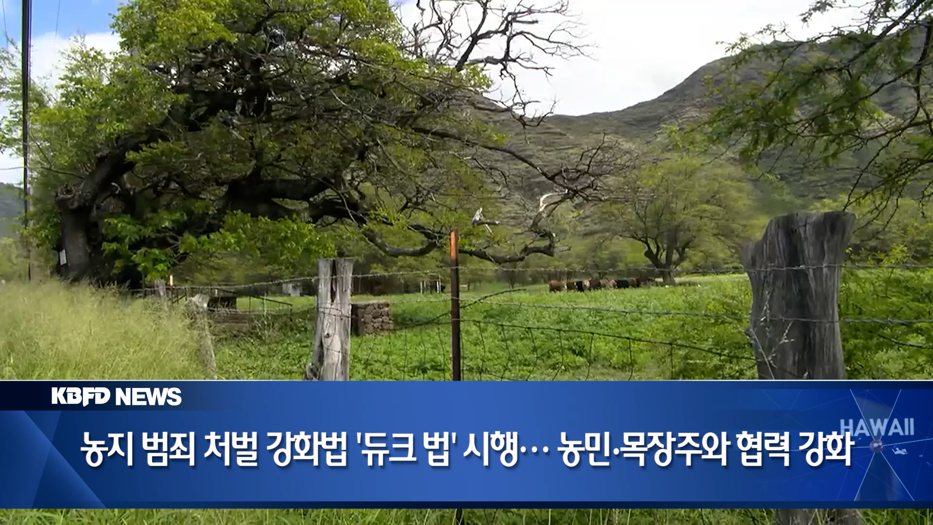 하와이 법무부 산하 법집행국은 어제 농민과 목장주 수십 명과 함께 회의를 열고 최근 제정된 **‘듀크 법(Act 235)’**의 효과적인 시행을 위해 협력할 것을 당부했습니다.