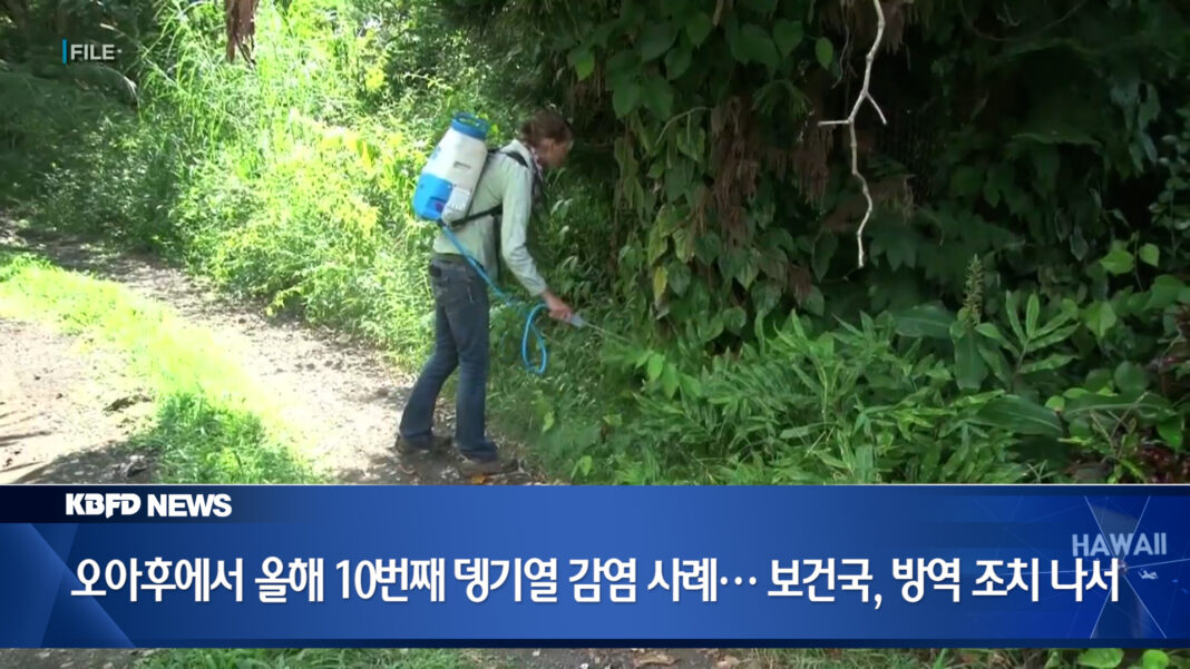 Home HAWAII NEWS 오아후에서 올해 10번째 뎅기열 감염 사례 HAWAII NEWS 오아후에서 올해 10번째 뎅기열 감염 사례 By KBFD - 08/04/2025 930 0 하와이 보건국(DOH)은 최근 오아후에서 여행 관련 뎅기열 감염 사례 1건을 추가로 확인했다고 밝혔습니다. 이로써 2025년 들어 하와이에서 보고된 뎅기열 감염은 총 10건으로, 마우이 1건, 오아후 9건입니다. 당국에 따르면, 감염자는 뎅기열이 흔한 국가를 방문한 후 바이러스에 노출된 것으로 파악됐습니다. 보건국은 즉각 현장 점검과 모기 방제팀을 감염자 거주지 인근에 투입해, 추가 전파를 막기 위한 방역 작업을 벌였습니다. RELATED ARTICLESMORE FROM AUTHOR 하와이 공립학교, 지역 소규모 농가 농산물 직접 구매 확대 호놀룰루 시의회 ‘빌 60’ 통과…스카이라인 철도 연장 본격 검토 하와이 삶의 질 설문조사 실시…생활비·재난 대비 등 주민 의견 수렴 하와이 푸드뱅크 기금 모금 시작…주 공무원 참여 ‘식품·기금 드라이브’ 진행 트럼프 ‘상호관세’ 환급 길 열려…대체 관세는 또다시 소송