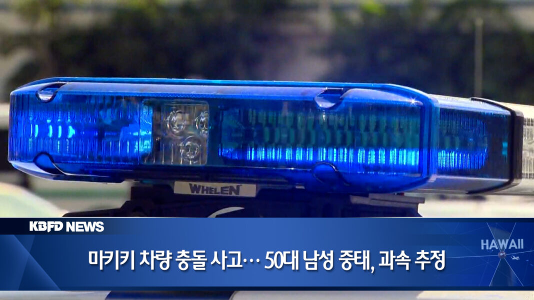 마키키 지역에서 차량 한 대가 나무를 들이받는 사고가 발생해 50대 남성이 중태에 빠졌습니다. 과속이 주요 원인으로 추정되는 가운데, 경찰은 음주나 약물 복용 여부에 대해서도 수사 중입니다.