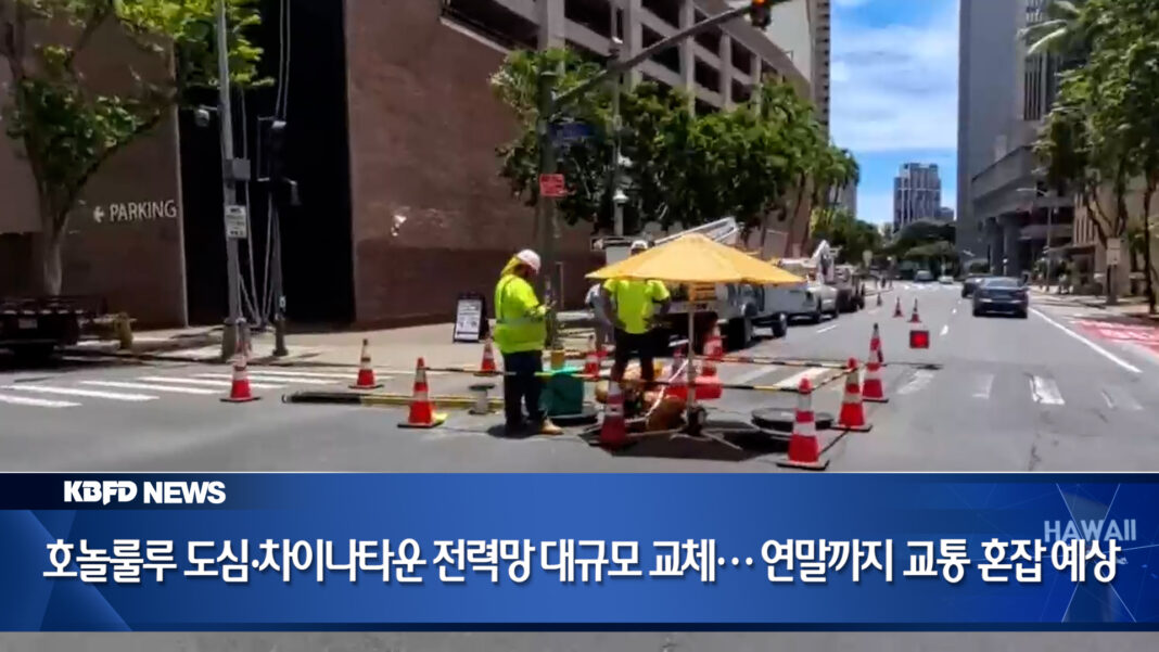 호놀룰루 도심과 차이나타운에서 1억 8천 3백만 달러 규모의 전력망 교체 공사가 한창입니다. 하와이안 일렉트릭은 수십 년 된 노후 전력 시스템을 전면 교체하고 있지만, 연말까지 주요 도로 곳곳에서 차선 폐쇄와 주차 제한이 이어질 전망입니다.