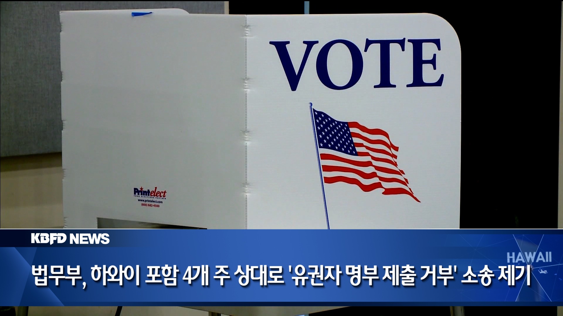 법무부가 하와이를 포함한 4개 주가 연방 정부의 요구에 따라 statewide 유권자 등록 명부를 제출하지 않았다며 일제히 소송을 제기했습니다. 이번 조치는 전국적으로 18곳에 대한 법적 대응 가운데 하나이며, 2020년 대선 관련 자료를 제출하지 않은 조지아주 풀턴 카운티도 소송 대상에 포함됐습니다.