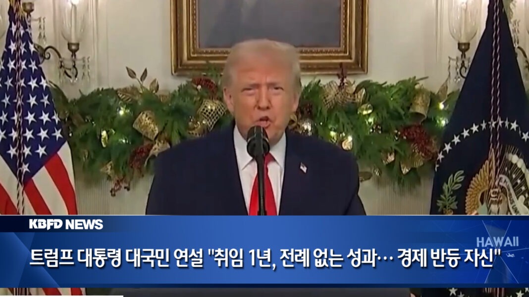 트럼프 대통령이 취임 1년을 맞아 대국민 연설에서 경제 회복과 물가 안정, 대외 성과를 강조하며 내년 중간선거를 앞두고 국정 성과를 부각했습니다. 내년 봄 사상 최대 규모 세금 환급과 군인 특별 지급금까지 발표하며 민심 잡기에 나섰습니다.