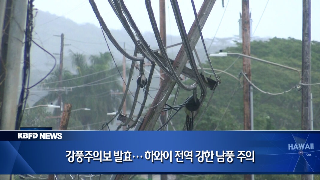 하와이 일부 지역에 강풍주의보가 발효됐습니다. 접근 중인 저기압 전선의 영향으로 강한 남풍이 불 것으로 예상되면서, 산악 지역과 일부 섬에서는 돌풍에 각별한 주의가 요구됩니다. 자세한 기상 소식입니다.