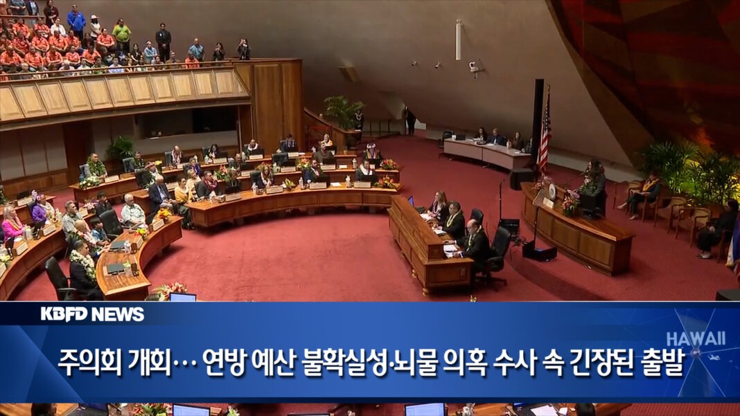 하와이 주의회가 어제 정기 회기를 시작했습니다. 이번 회기는 연방정부의 예산 삭감 가능성과 함께, 주 법무장관이 주의원 뇌물 수수 의혹에 대한 수사에 착수하면서 시작부터 무거운 분위기 속에 열렸습니다. 의원들은 높은 생활비 문제를 최우선 과제로 꼽았지만, 워싱턴 정치 상황과 수사 결과가 향후 입법 일정 전반에 영향을 미칠 것으로 보입니다.