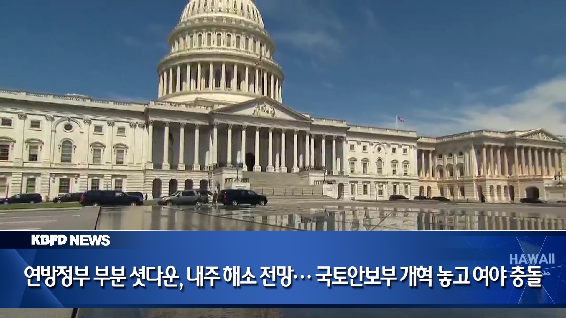 트럼프 행정부의 이민 정책을 둘러싼 갈등으로 일부 연방 정부 부처가 셧다운에 들어간 가운데, 이르면 다음 주 중 예산안 처리가 이뤄질 것이라는 전망이 나오고 있습니다. 다만 이민 단속을 담당하는 국토안보부 개혁 문제를 놓고 여야의 입장 차가 커 갈등은 당분간 계속될 것으로 보입니다.
