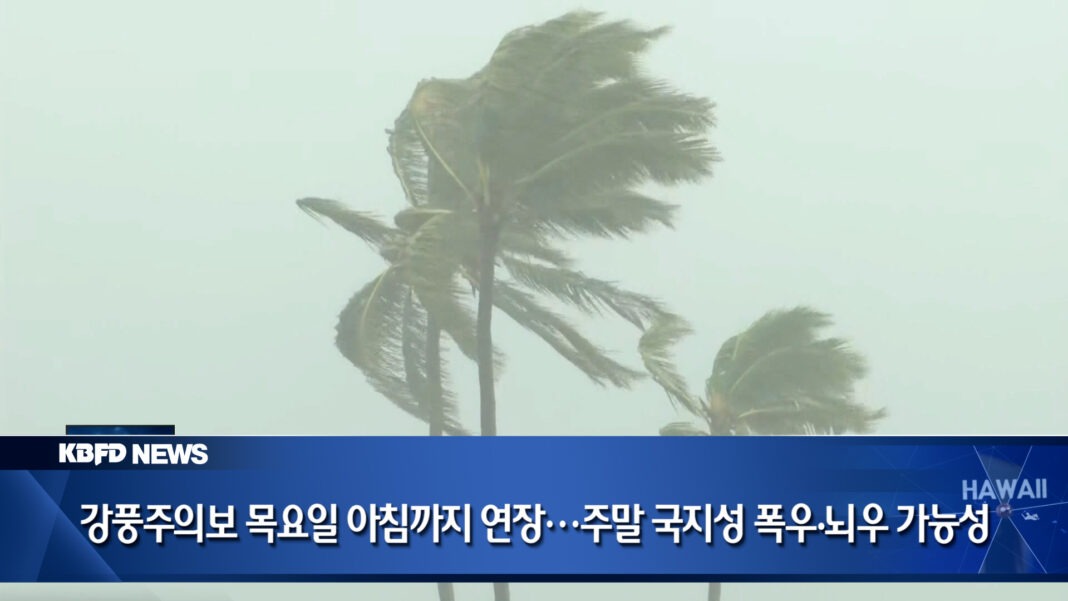 강한 무역풍이 밤사이에도 계속 불면서, 현재 하와이 일부 지역에는 강풍주의보가 발효 중입니다. 어제까지 이어졌던 주의보는 오늘 오전까지 연장된바 있습니다. 북북동쪽 해상에 자리한 강한 고기압이 조밀한 기압 경도를 형성하면서 바람을 더욱 강하게 밀어내고 있습니다. 특히 산간 지역과 산을 넘는 길목, 그리고 산 남쪽과 서쪽 지역에서는 바람이 더욱 거세게 불고 있습니다. 현재까지 시속 25마일에서 35마일의 지속적인 바람과 함께, 일부 지역에서는 시속 50마일을 넘는 돌풍도 관측됐습니다. 야외 활동 시에는 강한 측풍에 각별히 유의하셔야겠습니다. 오늘 낮부터는 바람이 점차 약해질 전망이지만, 이번 주 후반까지는 다소 강한 무역풍이 이어질 가능성이 있습니다. 비 소식도 있습니다. 현재는 전형적인 무역풍 패턴으로, 바람을 타고 유입되는 수증기 영향으로 바람을 맞는 지역과 산간 지역을 중심으로 소나기가 내리고 있습니다. 반면, 바람을 등지는 지역은 비교적 건조한 날씨가 이어지고 있습니다. 하지만 주말로 접어들면서 기류에 변화가 예상됩니다. 상층 저기압성 교란 두 개가 하와이 인근에 머물 가능성이 제기되고 있으며, 이에 따라 금요일부터 일요일까지 비와 함께 국지적으로 천둥·번개를 동반한 불안정한 날씨가 나타날 수 있습니다. 특히 토요일과 일요일 사이에는 동남쪽에서 더 깊은 수증기가 유입돼 일부 지역에 많은 비가 집중될 가능성도 있습니다. 무역풍이 강하게 유지되면 비구름이 빠르게 이동하겠지만, 바람이 약해질 경우 특정 지역에 폭우가 오래 머물 가능성도 배제할 수 없습니다. 월요일에는 전선이 섬 상공을 통과한 뒤 화요일 오전에는 점차 맑아질 것으로 전망됩니다. 기상 상황이 빠르게 변동하고 있는 만큼, 최신 예보를 수시로 확인하시기 바랍니다.