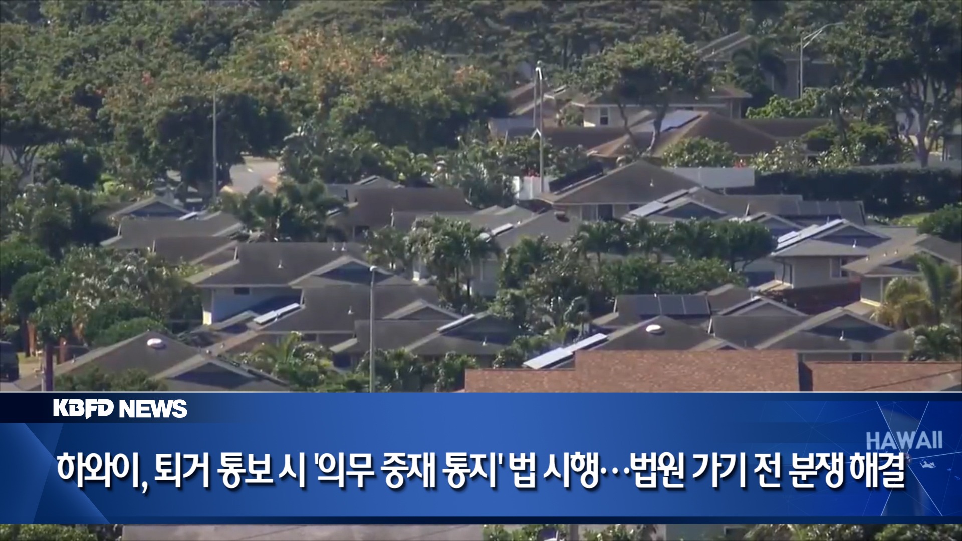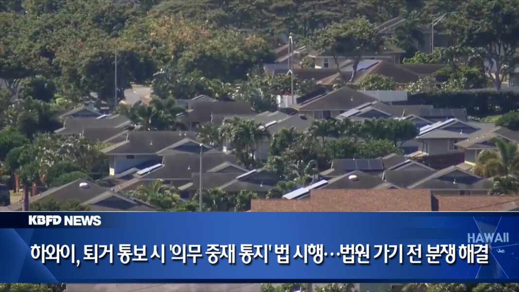 하와이에서 세입자에게 퇴거 통보를 할 경우, 집주인이 반드시 중재기관에 통보하도록 하는 새로운 주법이 시행됐습니다. 법원에 가기 전 중재를 통해 분쟁을 해결할 기회를 보장하겠다는 취지입니다. 2년간 시범 운영되는 이번 제도의 주요 내용과 반응을 전해드립니다.