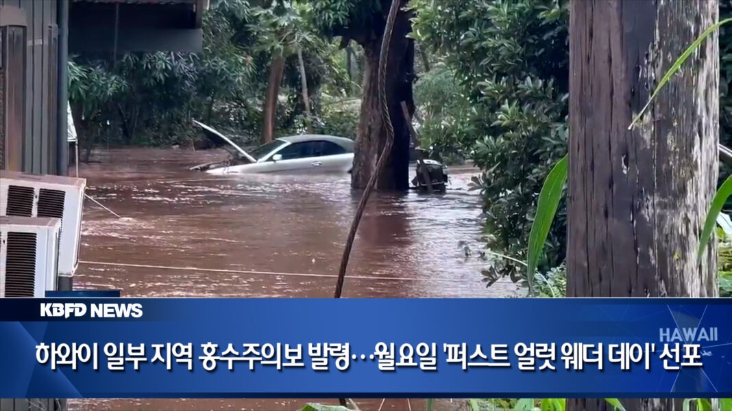 월요일인 오늘, 하와이에는 추가 폭우 가능성이 예보되면서 기상 당국이 ‘퍼스트 얼럿 웨더 데이’를 선포했습니다. 토요일 집중호우로 지반이 이미 포화 상태에 이른 가운데, 추가 강수로 인한 침수와 홍수 위험이 우려되고 있습니다. 자세한 날씨 소식 전해드립니다.