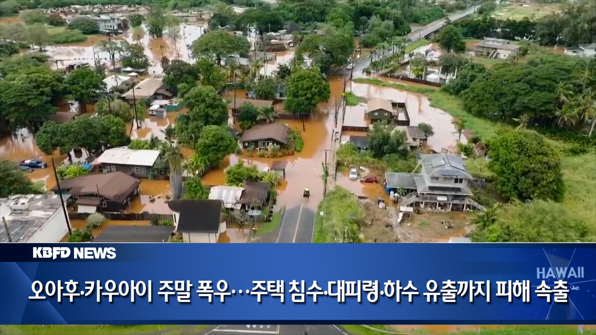 주말 사이 하와이 전역에 쏟아진 집중호우로 오아후와 카우아이 곳곳에서 침수와 도로 통제, 긴급 대피령이 잇따랐습니다. 일부 주택과 체육시설이 물에 잠기고, 하수 처리시설에서는 오버플로우가 발생하는 등 크고 작은 피해가 이어졌습니다. 주말 폭우 피해 상황을 종합해 전해드립니다.