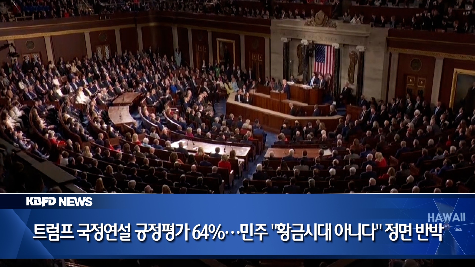 트럼프 대통령의 역대 최장 국정연설에 대해 시청자 3분의 2가 긍정적으로 평가한 것으로 나타났습니다. 하지만 야당인 민주당은 생활비 부담과 이민 단속 문제를 집중 거론하며 정면으로 반박했습니다.
