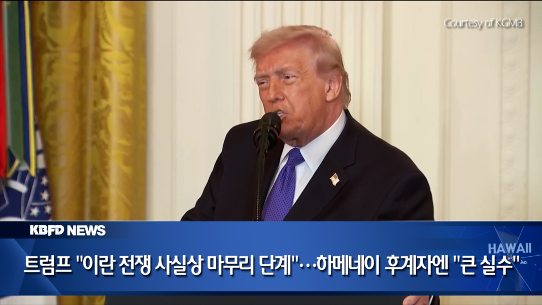 트럼프 대통령은 CBS뉴스와의 전화 인터뷰에서 미국과 이스라엘의 대이란 군사 작전이 시작된 지 열흘 만에 전쟁이 마무리 단계에 접어든 것으로 보인다고 밝혔습니다. 트럼프 대통령은 이란군의 군사력이 크게 약화됐다며 해군과 공군, 통신 체계가 사실상 무력화된 상태라고 주장했습니다. 또한 전쟁이 당초 예상했던 4~5주보다 훨씬 빠른 속도로 진행되고 있다고 강조했습니다. 국제 원유 수송의 핵심 통로인 호르모즈와 관련해서는 현재 선박 통행이 이어지고 있지만, 필요할 경우 미국이 해협을 장악하는 방안도 검토할 수 있다고 밝혔습니다. 한편 트럼프 대통령은 사망한 이란 최고지도자 알리 하메네이의 후계자로 차남인 모즈타바 하메네이가 선출된 데 대해 “큰 실수”라고 생각한다며 강한 불만을 나타냈습니다. 트럼프 대통령은 NBC 방송 인터뷰에서 모즈타바 하메네이의 지도자 선출이 오래 지속될지 의문이라며, 미국이 이를 받아들이지 않을 가능성을 시사했습니다. 일부 언론은 트럼프 행정부가 이란이 핵 개발을 포기하지 않을 경우 새 최고지도자를 겨냥한 이른바 ‘참수 작전’ 가능성도 배제하지 않고 있다고 전했습니다. 다만 트럼프 대통령은 현재로서는 농축 우라늄 확보를 위한 미군 지상군 투입 계획은 결정된 바 없다며 상황을 지켜보고 있다고 밝혔습니다.