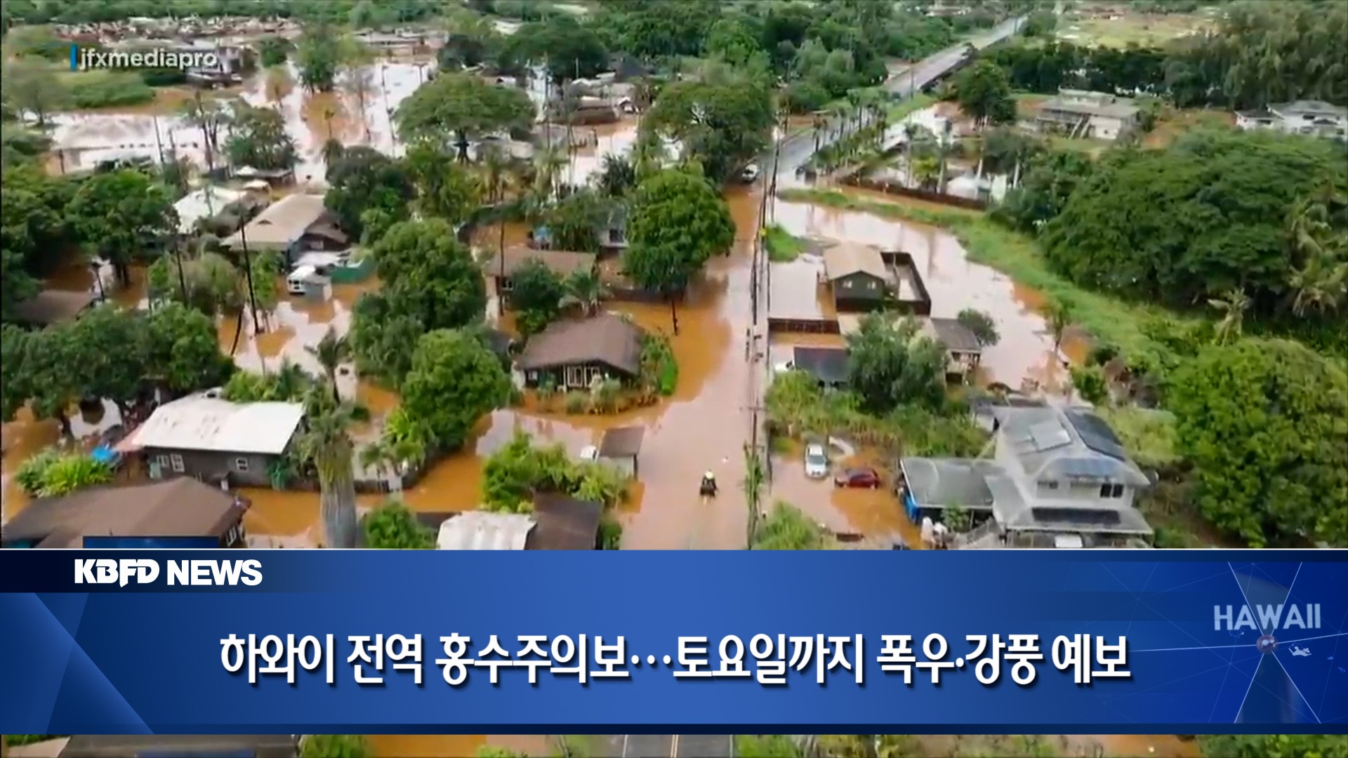 기상당국은 하와이 전역에 내려진 홍수주의보를 오늘부터 토요일 오후까지 연장했다고 밝혔습니다. 강력한 코나 스톰의 영향으로 깊은 열대성 수증기와 강한 바람, 대기 불안정이 겹치면서 화요일부터 최소 토요일까지 강한 비가 여러 차례 내릴 가능성이 있습니다. 이에 따라 갑작스러운 홍수와 강풍, 강한 뇌우와 함께 일부 지역에서는 심한 천둥번개가 발생할 수 있을 것으로 예상됩니다. 홍수 위험은 빠르면 오늘 밤 카우아이와 오아후 지역에서 시작될 수 있으며, 이후 주 후반으로 갈수록 하와이 섬 전역으로 확대될 전망입니다. 기상당국은 특히 주 후반과 주말로 갈수록 강한 뇌우와 심한 폭풍 발생 가능성이 높아질 수 있다고 밝혔습니다.