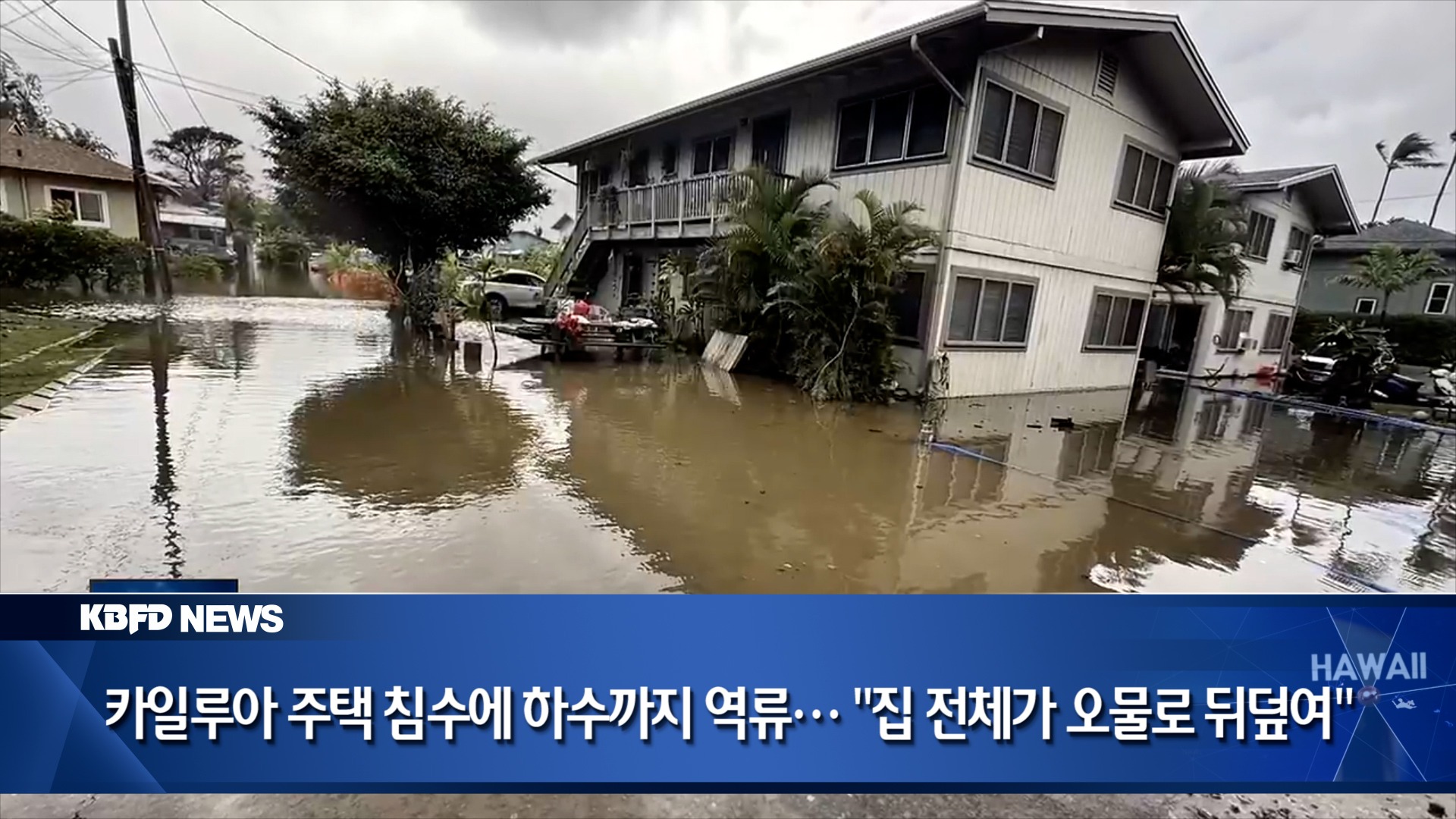 지난 금요일 폭우로 오아후 윈드워드 지역카일루아의 한 주택이 침수되는 피해가 발생했습니다. 카와일로아 로드(Kawailoa Road)에서 카일루아 비치 파크(Kailua Beach Park) 맞은 편에 위치한 이 3베드룸 주택은 빗물뿐 아니라 하수까지 역류하며 피해가 더 커졌습니다. 이 집에서 자란 한 여성은 밤사이 하수관이 역류하면서 다음 날 집 안 전체가 생하수로 뒤덮여 있었다고 말했습니다. 해당 주택에는 72세 어머니가 거주하고 있었으며 가족들은 지난 25년 동안 이 집에서 살아왔다고 전했습니다. 그녀는 이 집이 친구와 가족이 모이는 소중한 공간이었지만 이제는 새로운 집을 찾아야 할 상황이라고 밝혔습니다. 같은 건물 위층에 사는 엘리자 탈봇(Eliza Talbot) 역시 홍수로 인해 가족과 함께 집에 고립됐습니다. 탈봇은 아이를 차까지 데려가기 위해 패들보드와 카약을 이용해야 했다고 말했습니다. 일요일에는 호놀룰루 시정부 작업팀이 무릎 높이까지 차오른 물이 고여 있던 도로의 배수 작업을 진행했습니다. 주민들은 당국이 며칠 동안 많은 피해 상황에 대응하느라 어려움을 겪고 있다는 것을 이해하지만 피해 규모가 너무 커 복구 방법조차 막막하다고 말했습니다. 침수 피해를 입은 가족은 현재 보험이 피해 보상에 도움이 될 수 있을지 확인하고 있는 상황입니다. 가족은 대부분의 물건이 심하게 오염돼 사용할 수 없는 상태라며 앞으로 어떻게 복구하고 새로 시작할지 고민하고 있다고 밝혔습니다.