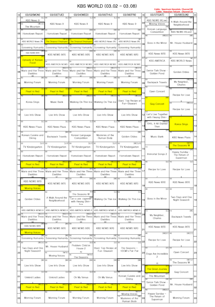 Home TV Schedule KBS WORLD Schedule TV Schedule KBS WORLD Schedule By KBFD - 08/26/2024 3776 0 RELATED ARTICLESMORE FROM AUTHOR KBFD Schedule Arirang TV Schedule